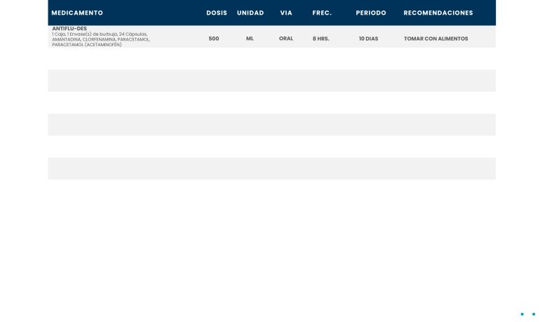- Recordatorios automáticos de toma y renovación de medicamentos.